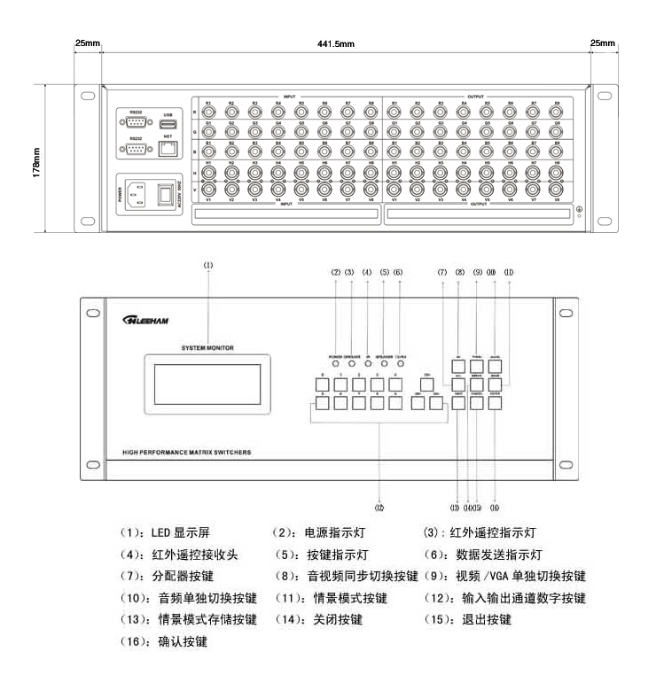 LH60-RGB808 | 8進8出RGB矩陣,5BNC接口,750MHZ,面板/紅外/RS-232控制。 |